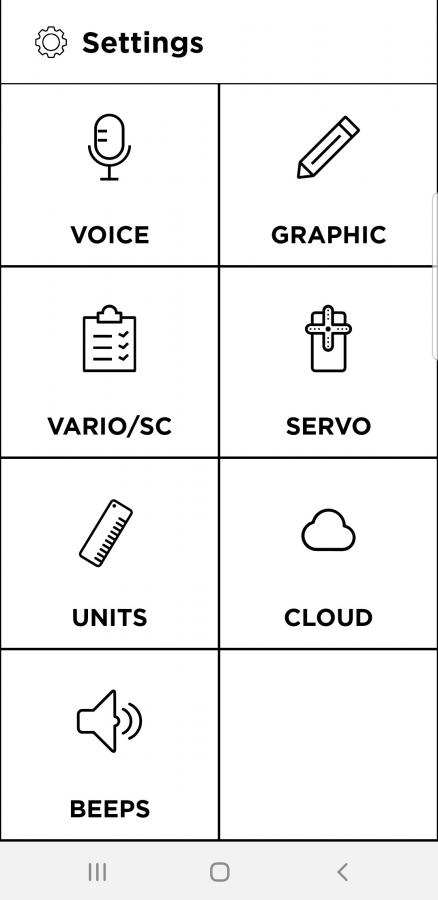 Voices in Snipe: Time remaining, lap count, start/restart, penalty points, inside, off-course distance (in/out), altitude, altitude gain in thermal, average thermal, altitude warning, battery warning.