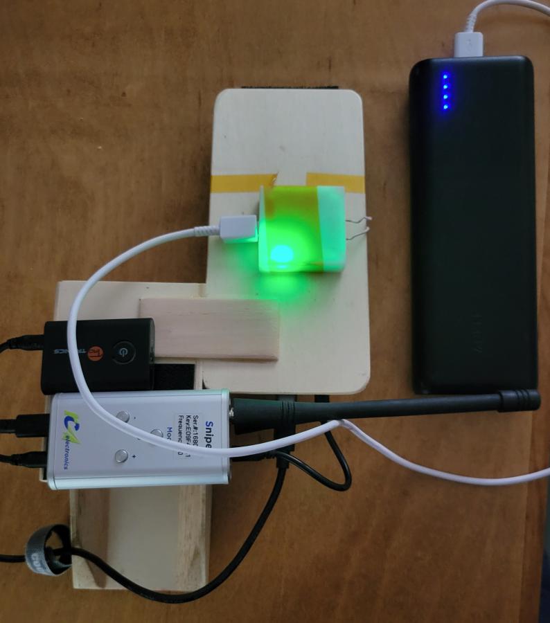 I found a bare bones 20W Qi Wireless Charger on Amazon. With a little bit of relocation of the velcro I use to retain the phone, the coil fits nicely between the velcro strips. I should be able to tape the electronics to the back. It takes a USB-C connection that I can plug into an exteral battery. It charged fast enough to charge the phone while also powering the snipe module while the phone was in airplane mode.