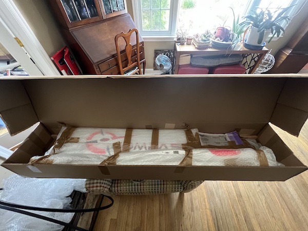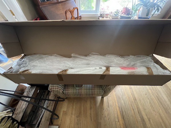 After opening it up and removing the packing material I was able to look at the components: wing tips, inner wing panels, horizontal stab/elevator, vertical stab/rudder, front fuselage, rear tailboom, and an accessory bag with the wing joiners and servo cover sheets.
