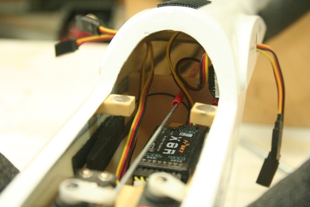 My receiver is currently located forward of the servos in the next chamber.
