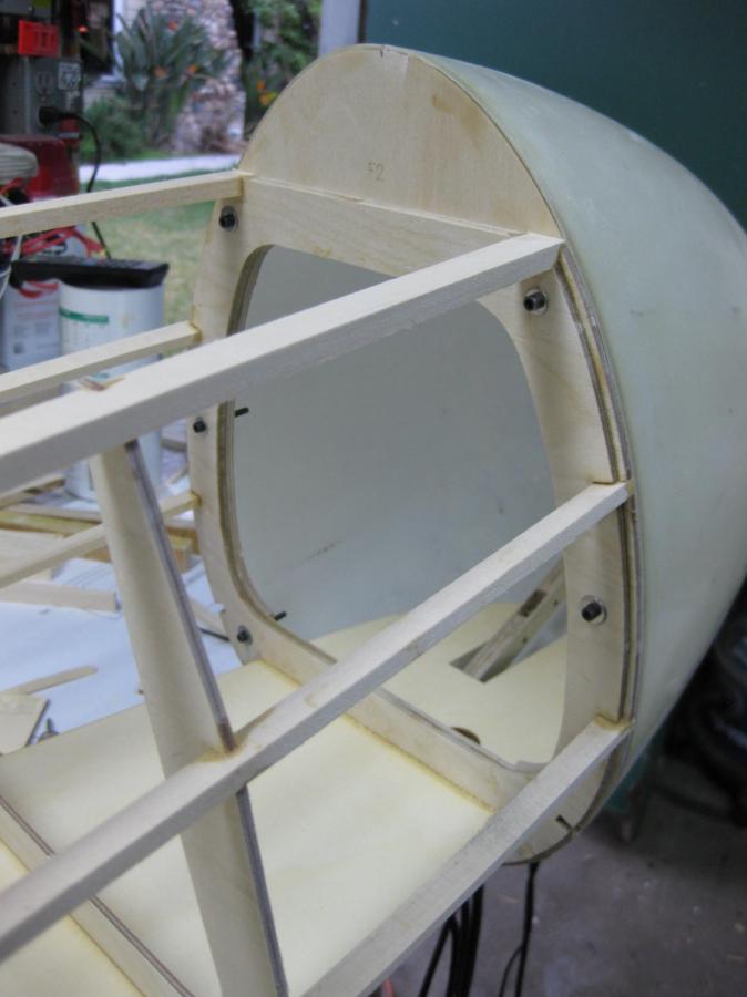 A clearance hole is drilled through the fiberglass nose cone but the screw part is threaded into the 3/8" thick ply keel extension that is just behind it.