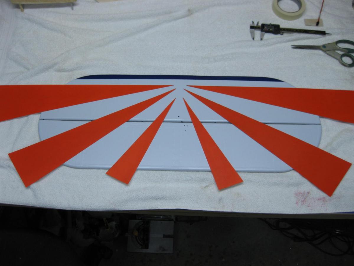 Got some Christen Eagle Blue on the leading edge of the stab and now trying to figure out ..... two ....or three stripes. I think I leaning toward two.