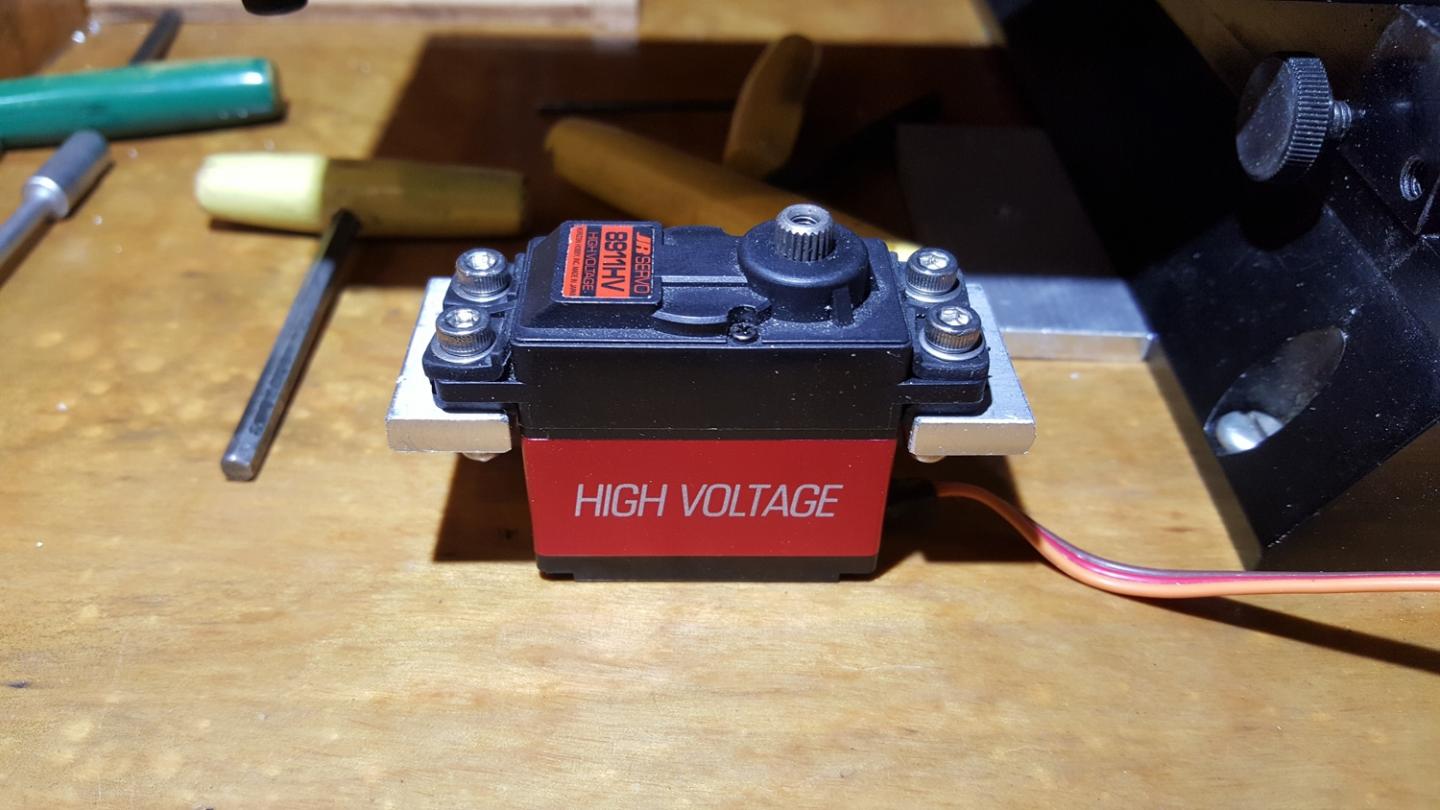 The servo was then mounted and I put it in place with 4 cap head bolts, using nylon insert lock nuts underneath to make sure it won't come loose: