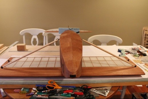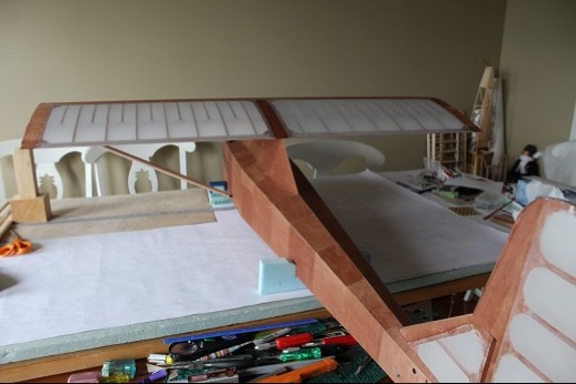 Good evening! All the ply has been put onto the model. Whoopee! The struts got more planing and sanding to shape. Their ends are getting drilled starting with small diameter bits and working up to 1/8". It is very tedious drilling end grain wood! Images will get uploaded whenever the website allows it. I hate frickin' computers and related computer crap!