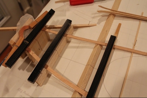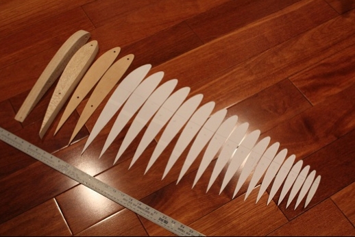 Here are the wing rib patterns and center section balsa ribs. All the patterns have reference marks to locate spars. I have the CF wing tubes and sockets. They are 0.5" O.D. They will be doubled vertically between the spars. They will facilitate connecting the outer panels to the center section.