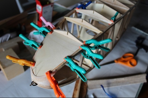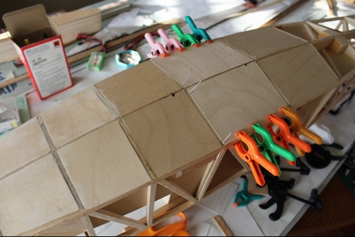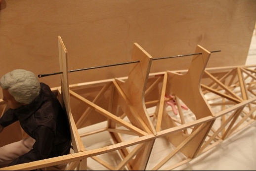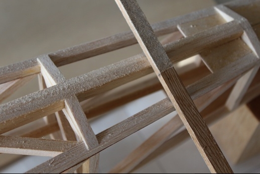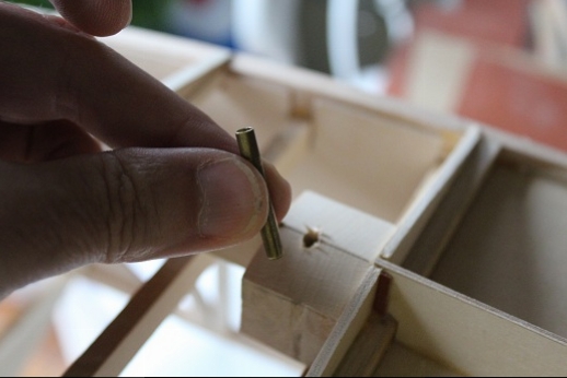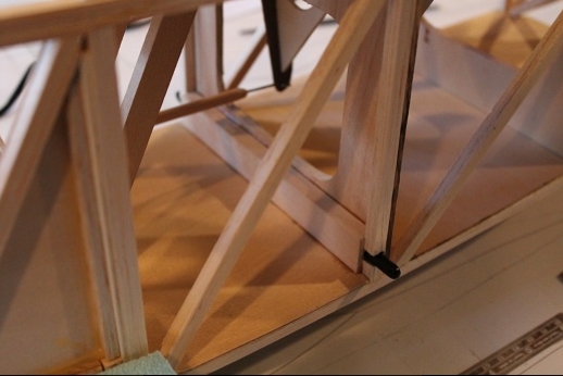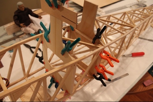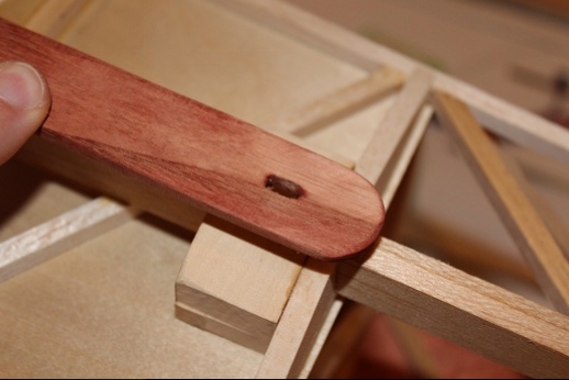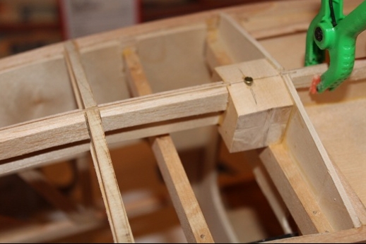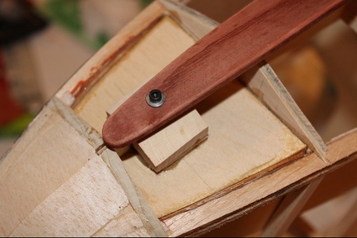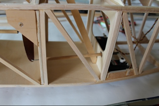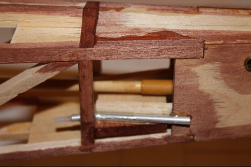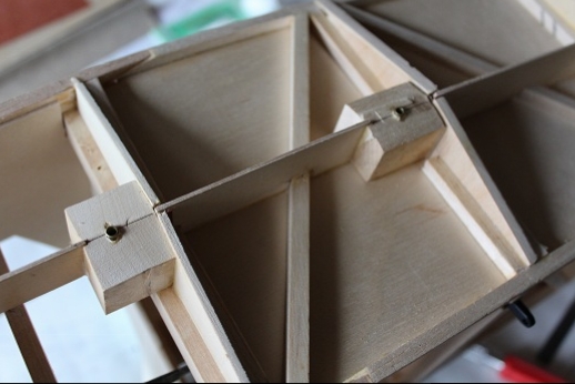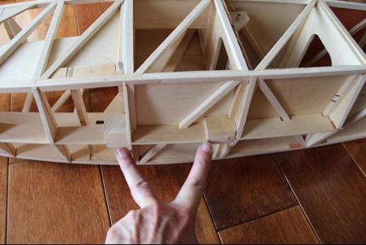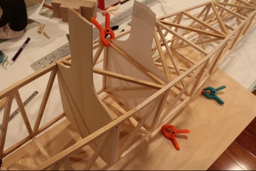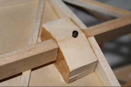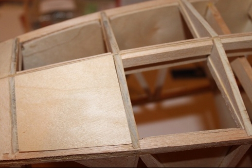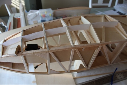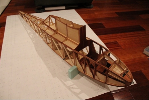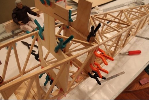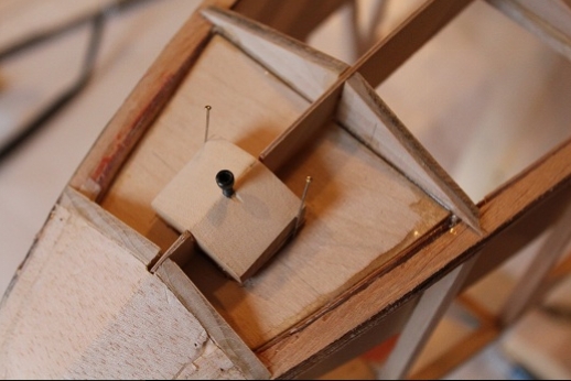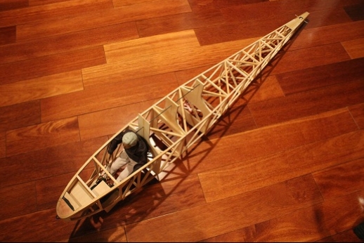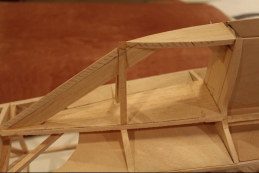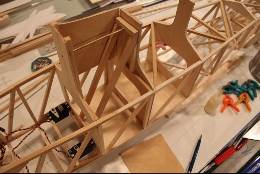 Formers for the wing mount pylon structure were fabricated and let into the fuse 'box' structure. Paper patterns were drawn using the plans then fitted into the structure. The first former does not actually attach to the wing. It is for support of the others. It was made in halves using light ply. The second two formers were made from plywood. To fit each into the fuselage box a corresponding side diagonal had to be loosened one end to allow clearance for the former to be 'swung' into place. This wasn't hard work... just fiddly. You can see a wire piercing the pylon portion of the formers. This will be the wing retention pin. Tabs from the wing will hang down into the open pylon so that the wire can capture them. One end of the retention pin will be part of the headrest. At least this will eliminate some bolts! These strut braced birds have lots of nuts and bolts holding them together.