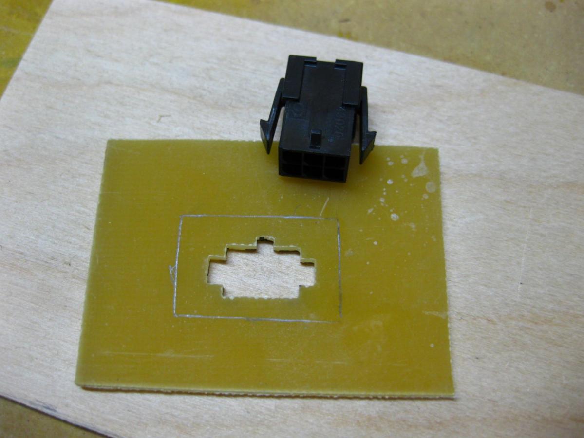 Going to try Molex MicroFit 3.0 locking connectors for the wing root. Since I didn't want any wires showing in the transparent covering, I ran the wires through the D-box area..... so a template was made to replicate the new hole location.