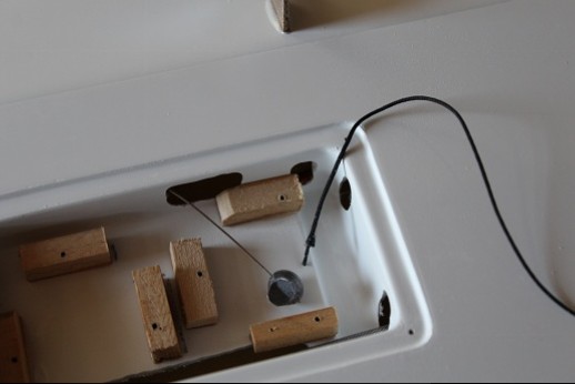 The tow release servo got mounted. The servo, horn fully forward, is 'closed' and travel is 14mm for fully open. The horn's position allows the servo to 'ramp up' torque before a load is felt. Epoxy was brushed into the fuselage to give the hook and loop better surface 'purchase'. With it the batteries won't slide fore, aft or side to side. The same thing was done for the receiver and satellites. Hook and loop strap was fixed one end and is used to capture the batteries. A storage box was fabricated and varnished. Dion...I ran out of time so didn't stain it!