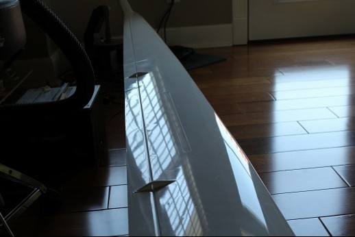 Happy 4th of July!!! Thanks, Tim! Thanks for your input about this bird's set up, too! Flap horns and their respective slots were made, test fitted then epoxy and filler mix was used to install the horns. I put epoxy into the slots then added more epoxy to the horns. They were taped in place and the panels were flipped over while the epoxy mix cured. When this cured the push rods were set up.