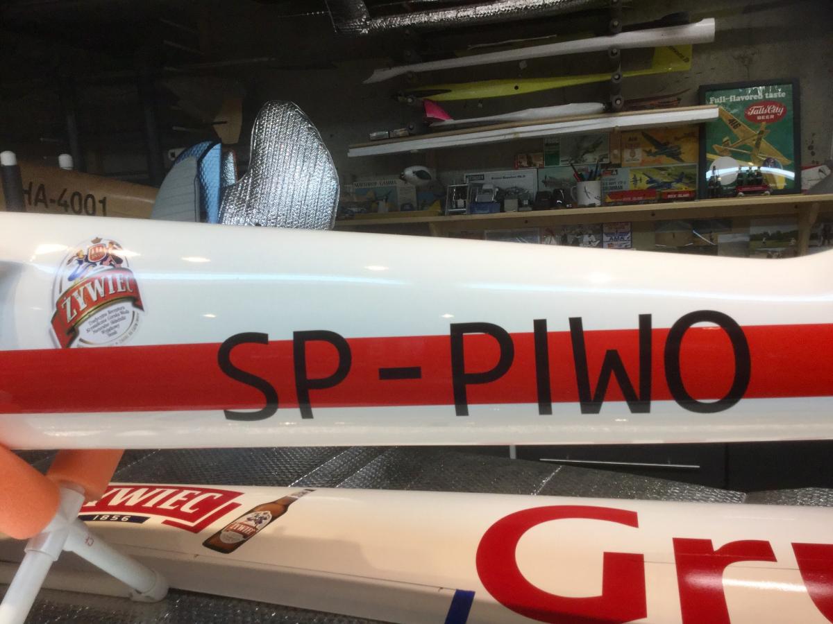 i realized that the white and red flag of Poland isn’t going to show up well on my white and red design, so I went with something different via the round graphic at the top of the rudder. SP is the registration prefix for Poland. Piwo is Polish for beer...