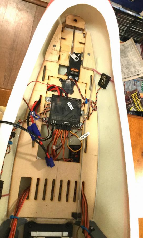I used a S6270 servo for the tow release because I just happened to have one in my stock but it is no longer available. I also drilled out the hole the tow release rod goes through and inserted an oversized brass tube. The rod seems to slide with much less friction in the brass tube than it did in the wood.