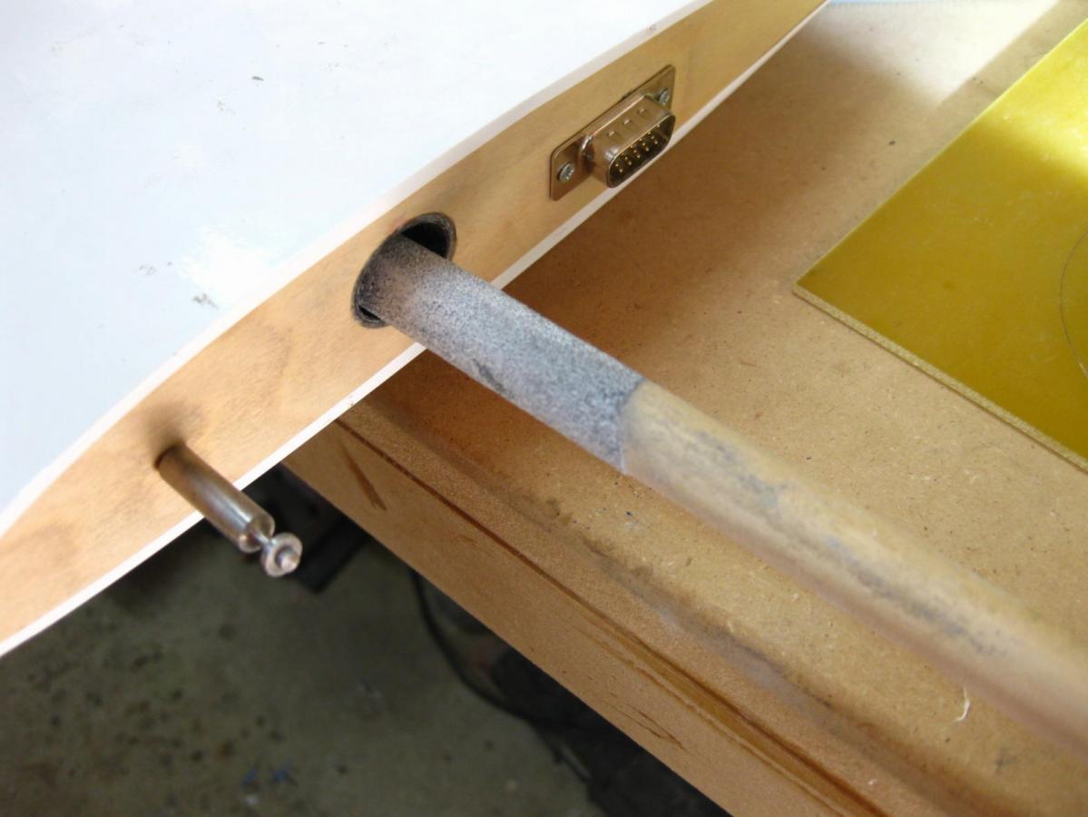 Was having some minor difficulty getting both wings installed.......finally looked down the wing joiner tube and found my impediment....some left over epoxy. So out came my collection of dowels with sand paper attached........ some of the larger "things"....