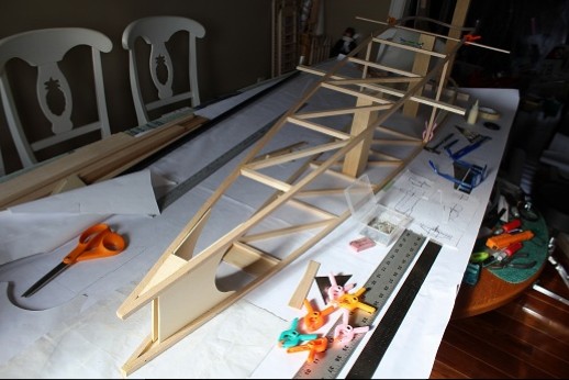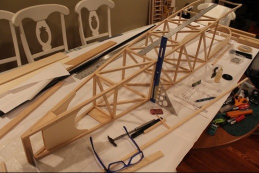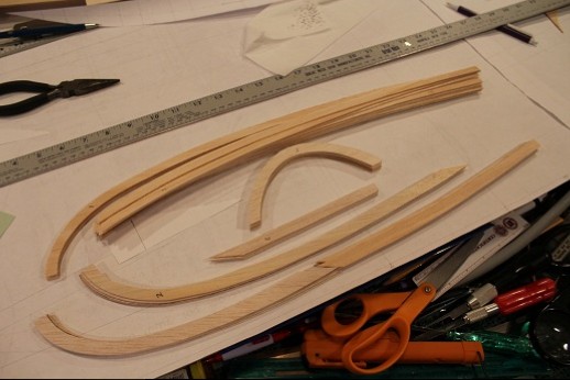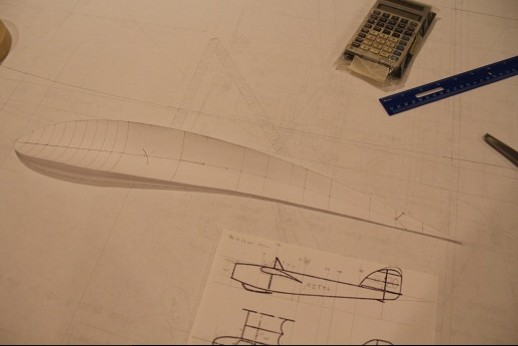 The first order of business was to start drawing the plans. The fuselage outlines are done using the three view and a foil was made in like manner.