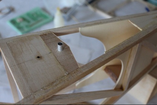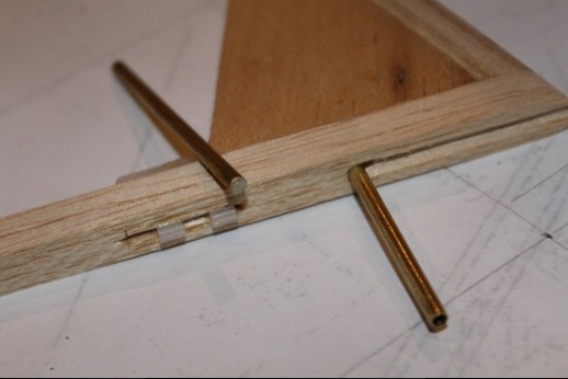 The elevator horn's push rod end is canted forward to clear the fin post end of the fuselage. The 'drive tubes' will get let into the elevators as the hinges are installed.