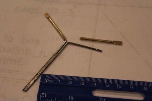 Dobranoc! All the edges have been rounded. The tail feathers will be removable. Pulling a hinge pin allows the elevators to be removed as the elevator horn is slid out of its 'drive tube'. The same set up was done on the Eaglet and works nicely. Here are the components loose, dry fitted then soldered and with the push rod clevis hole drilled.