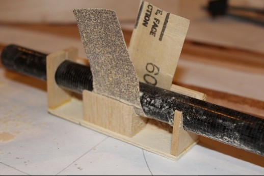 Csesc wszystkim! A tool was made to shape the wing tube shear webs. These shear webs will encapsulate the wing tube within the spar. The spars had a small segment glue to them so that this portion of the spar is as wide as the wing tube.