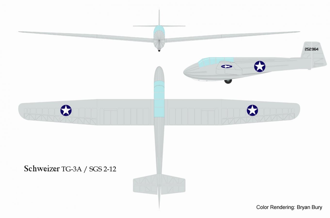 Having a P.Goldsmith TG-3A kit on order inspired me to visit the paint scheme possibilities for this model. Being a bit of a scale geek and this being a military aircraft I researched what the original factory or historical paint schemes should be before looking at post war civilian examples. To my astonishment there is extremely limited photographic reference for this glider on the web and also from the limited book references I have access to. Not only from a production stand point but also post war civilian examples. I'm sure a few people have a nice photo collection in a shoe box from their grandfathers war time experiences and there are surely a number of civilian photos out here somewhere. I have zero photos of a TG-3A in military action during WWII.