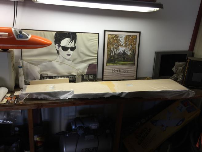 All of the flying surfaces are being glassed with 0.5 oz. cloth and then painted