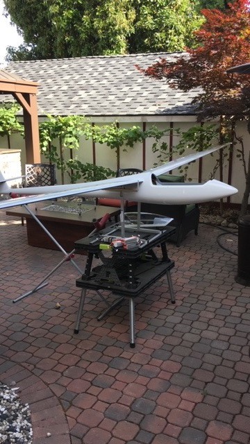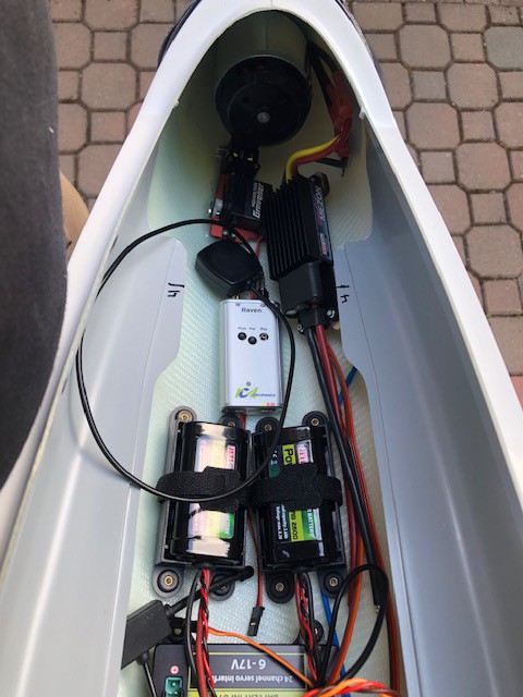 The wing is molded with 160g and 120g Carbon, Herex and spreadtow in the Carbon D-box. The fuselage is molded with 160g Carbon from the wing mounting area to the tail, and fiberglass nose for radio compatibility. Flying weight is 13.5kg to 20kg (max GPS wing loading allowed) depending on equipment. Full setup data is available.