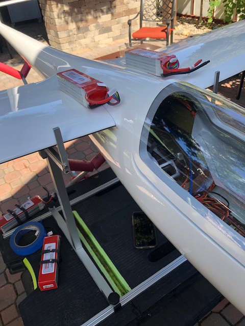 These are fully-molded, mostly Carbon models, white gel-coated, canopy mounted with release mechanism, removable plastic tray, instrument panel, fully hinged surfaces, retract with brake installed, separately-molded doors hinged and torsion spring-loaded, separate wing and elevator servo covers color-matched to contrasting underside color (Red or Anthracite); removable Rudder/Fin assembly means 92-inch fuselage for transport. Wing is 4-section, 8 servos (2 ailerons, 2 flaps, no spoilers), elevator 2-servos, rudder servo installs in the fin base above the tailwheel. Wing and fuselage bags included.