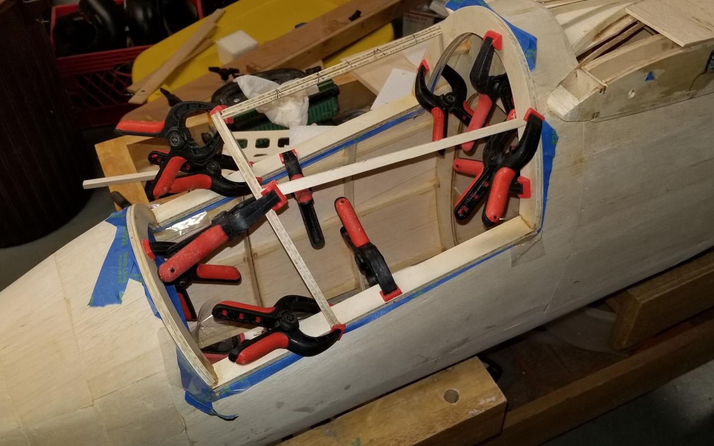 I am still working on little pieces of fuselage sheeting that remain to be done. The tail area takes time. I am also finishing up the sheeting around the wing mount.