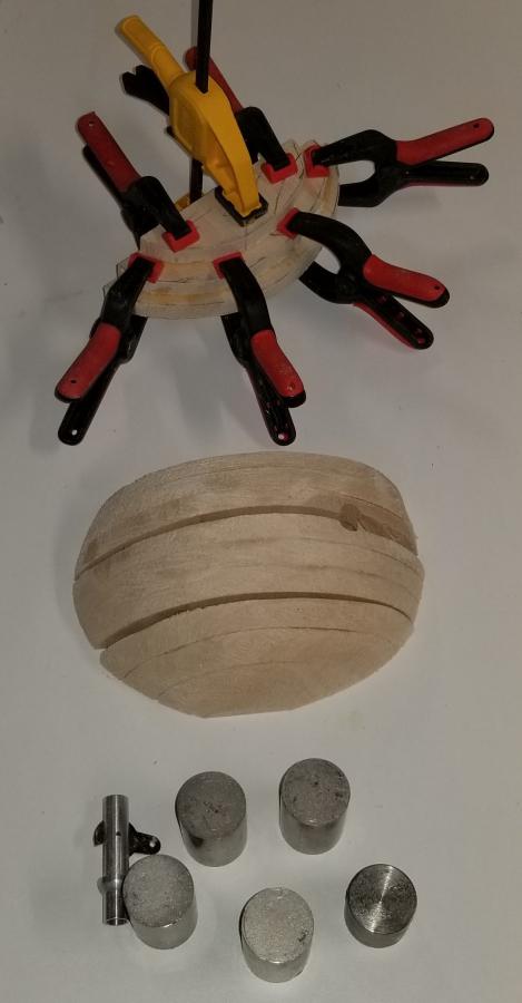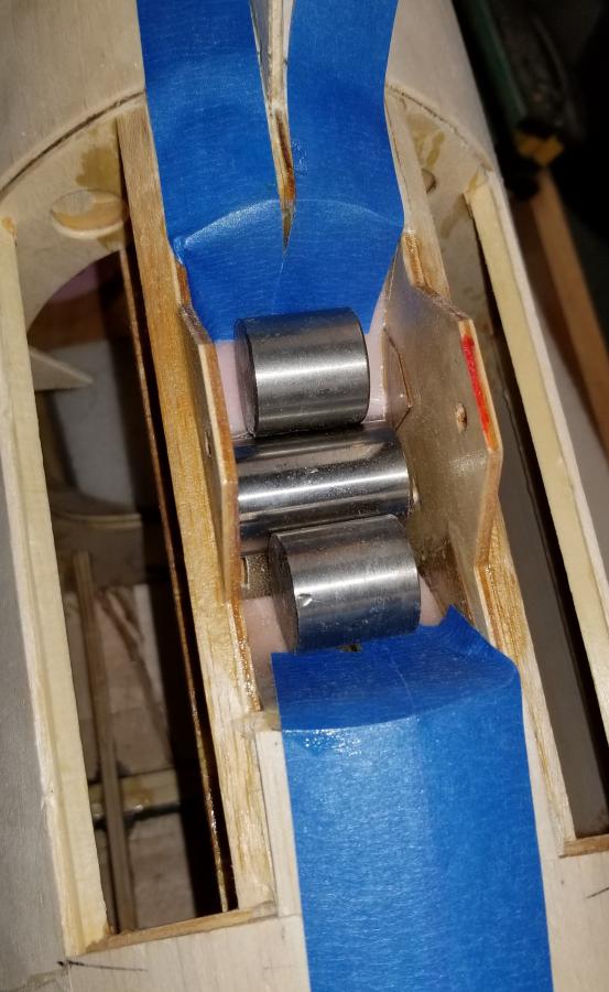 This thing is going to need a bit of nose weight. Aloft Hobbies has some 25 x 38mm tungsten slugs. Each one is about 12 ounces. I drilled out the middle two layers for four of them plus a 25 x 25mm piece. I also drilled for the TopModel tow release.