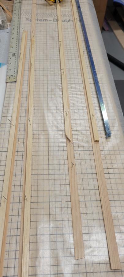 Time to start the second wing panel. Same thing over again, sand all the ribs and webs. Splice the spars. Glue...... Stopping for the day just before starting all the webs.