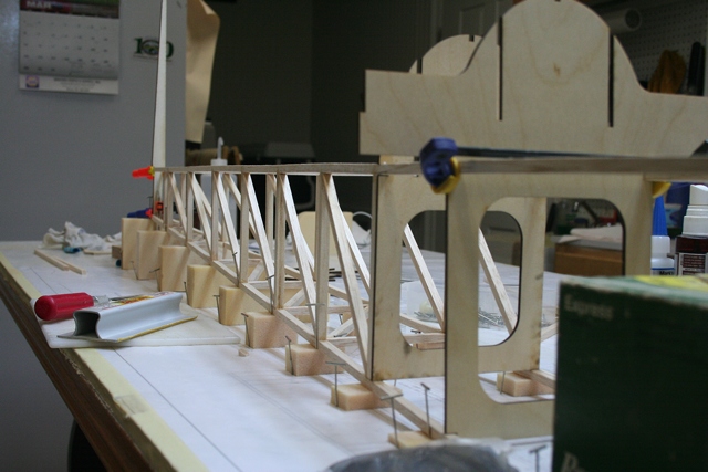 I'm old school as far as building technique goes. Just a big flat table with fiber board on top. I got Tom's permission to copy the prints so I didn't have to cut up the originals. Good old wax paper over the plans.
