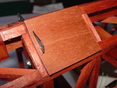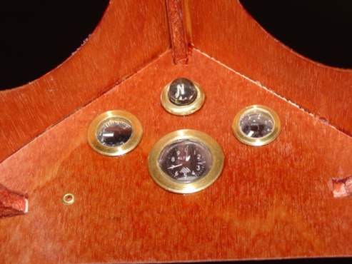 Brass tube used to ease nylon Allen head bolt through the 'O' ring. This bolt secures 'O' ring to fuselage. A 'T' nut put into 'O' ring and a Pan head nylon bolt secures the skid to the 'O' ring. Look ma... no hands! Ply used to detail cockpit enclosure. A penlight bulb was sacrificed to make the compass glass, A pegboard package rivet was used for a bezel. The compass card was drawn on paper then stuffed inside. There are no known pictures of the 'Balestruccio' instrumentation or panel so this is spurious. It's fun, though!