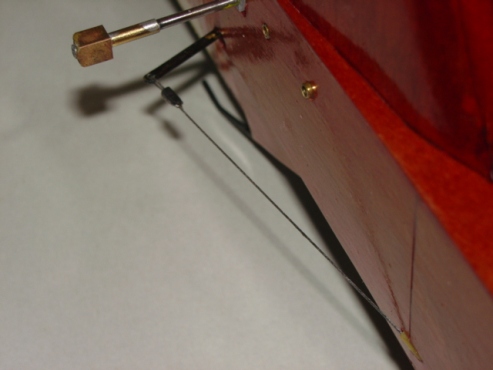 More, more, more.... who-wah-hah-hah-hah-hahhhhhhh! This is the model without tail skid installed or graphics painted. I forgot to include a photo if the nice and tidy pull-pull cable on the rudder horn. All adjustment is inside the fuselage. Note the square drive on the elevator 'horn'. It engages the square tube receiver on the elevator when plugging the stabs onto fuselage. Orange lollipop?