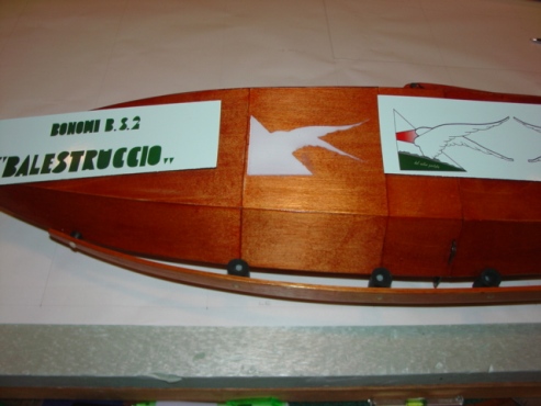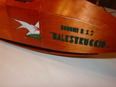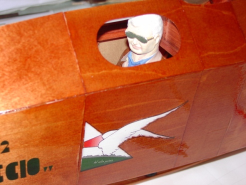 Gary Sibert of 'Pink-It.net' provided 'winged emblem' and 'Balestruccio' stencils and decals. I made stencils for the I-ABAZ on fuselage. The pilot was made to resemble my friend, Vincenzo Pedrielli, whose book, input, 'winged emblem' details and generosity with his time when answering my many questions about the full scale 'Balestruccio' and its construction was so readily forthcoming. Thank you, Vincenzo!