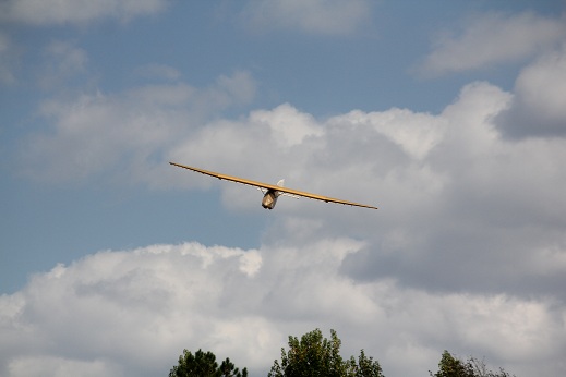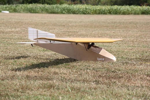 The original thread was lost so this is another 'retread'. The Vampyr is a great flying sailplane (to me, anyway) and indicates the slightest lift with ease. Even I can make this one stay up! Its best thermal flights were at the inaugural Clover Creek Aerotow. It doesn't 'penetrate' very well due to its scale Gottingen 441 foil. I got caught at the Horizon Hobby Aerotow last year and had to make a huge 'walk of shame' but at least I had sense to land it on a rise so that my feet didn't get muddy like some others who landed in corn! Again, LenB. did the maiden which was at Jim Dolly's 'Cumberland Aerotow'. There was concern for the incidence of the full flying stab but the design stood the test of time and it flew pretty much 'off the board'! Thanks, Len! Andy Grose took these great pictures of the Vampyr flying at Epp's Field near Huntsville, AL. Thanks Andy!