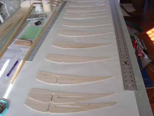 This is my third scale sailplane. I like the unusual subject to replicate and the Vampyr is definitely a worthy candidate! The Vamyr is the FIRST aircraft to have a stressed skin 'D' tube wing. In the words of Martin Simons- "This was revolutionary". All other aircraft of this stressed skin configuration can trace their 'lineage' to the Vampyr! The three views were obtained from Martin's fantastic book, 'Sailplanes: 1920-1945'. If you really like the history and evolutionary process of sailplanes and their design then get these books by Martin Simons! The Vampyr was designed by George Madelung working under Professor Arthur Proell of Hannover Technical University. The wing had a 'D' tube forward of the main spar and aft was fabric covering. It had two small struts used to stabilize the attachment to the boxy ply covered fuselage. It had three soccer ball type wheels. These were found to create less drag than normal wheels. The Vampyr had three different configurations which gave a clue as to its handling. The 1921 version had ailerons. These didn't seem to be very effective but 'differential throw' as we know it today didn't seem to be understood then. Photos show the Vampyr with wildly deflected ailerons in both directions! The second version of 1922 had 'warperons' which shows the wing had increased area in plan view around the 'aileron' portion of the wing. An interesting mechanism drove the 'warperons' which I'll show later. The third version shows the Vampyr with 'warperons' and increased rudder height. It must have been a bit of a 'pig' handling wise!