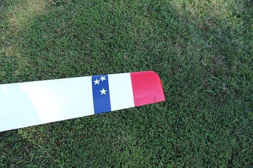 Here are pics of mine! Graphics by Gary Sibert of Decal-It are the white stars, flags on fin, number '57' and 'N' numbers on fuse. The rest is blue paint and clear coat on nose and red Monokote on rudder and blue Monokote on wing tips.