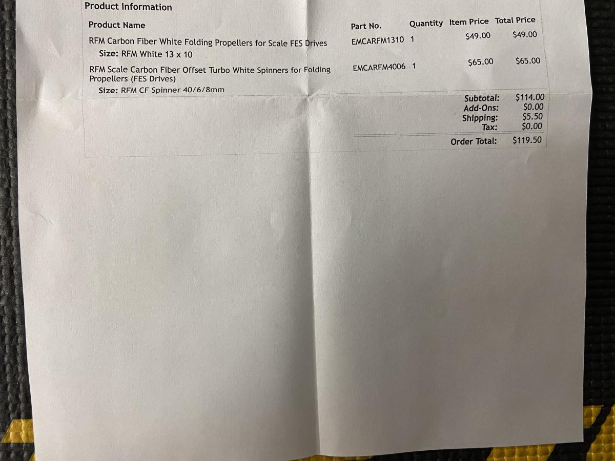 $100.00 for both and I will pay shipping and PayPal Fees or $40 for the folding prop or $60.00 for the Spinner and USPS First Class mail postage and I will cover the PP fees. Thanks for looking