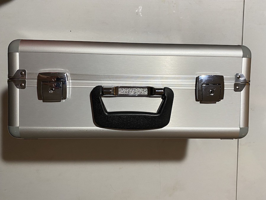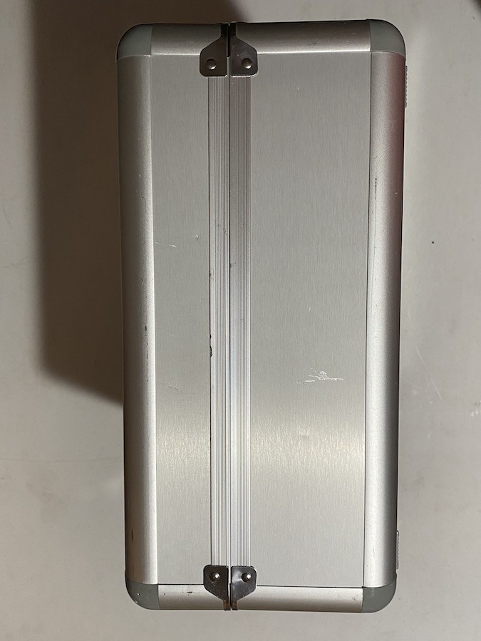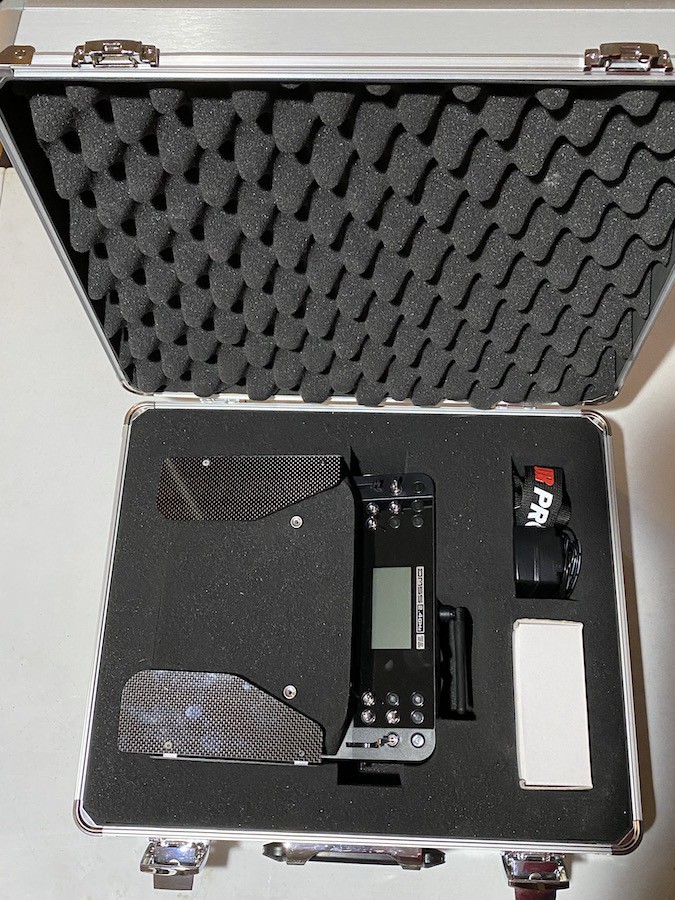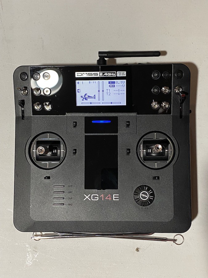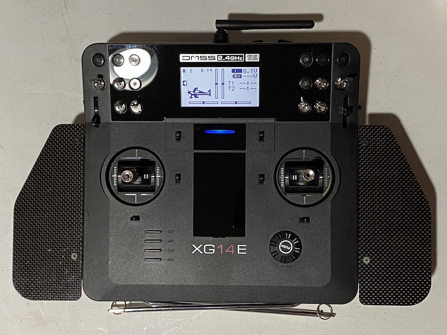 Mint/ New condition tray version XG14e transmitter with RG712BX receiver, manual, charger, and original accessories. The transmitter has no scratches or blemishes. Includes the palm, hand rests and neck strap for tray use. The aluminum case has minor scratches and blemishes.