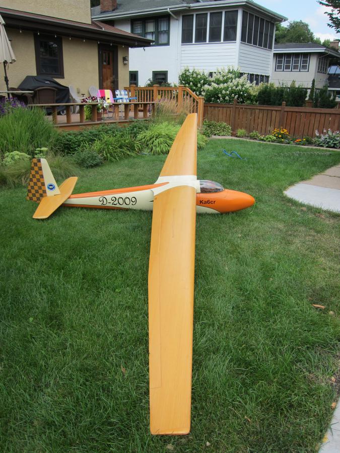 Dan had flaps added, even though a full size Ka6 does not have flaps...really helps slow this 50 pound beast down though.