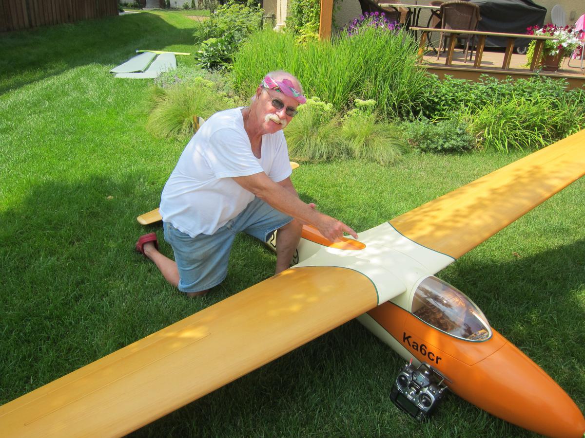 Dan Troxel's Iconic Ka6cr sailplane custom built for Dan in Germany around 2000. 6.5 meter, 50 pounds. Obeechi over carbon over foam wings. Gapless knuckle hinging on all control surfaces. Dan had Hans build this one with flaps which are not on real Ka6's. All servos were replaced using Hitect HS5645mg on rudder, ailerons, and flaps, and HS 985 for tow release. Spoilers are older airtroinics analog standard servos. Elevators are twin JR8611's. custom wing bags by Dennis Brandt. This is a BIG plane, two piece wings so wings are over 11 feet long, the fuse 10 feet long. I can fit it in my Honda Odyssey minivan with wings to the windshield. This is not a hanger queen as I have flown it a lot so minor hanger rash but nothing serious. Many more pictures available on request. Can be seen flying at Sled-works.com under videos, Kevin's maiden flight which is on U tube.