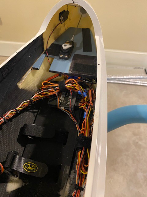 Motor pod is detachable and houses the Sunny Sky x4120-8 480kv motor, Hobbywing 100amp esc, plenty of power for r.o.g. Takeoff!