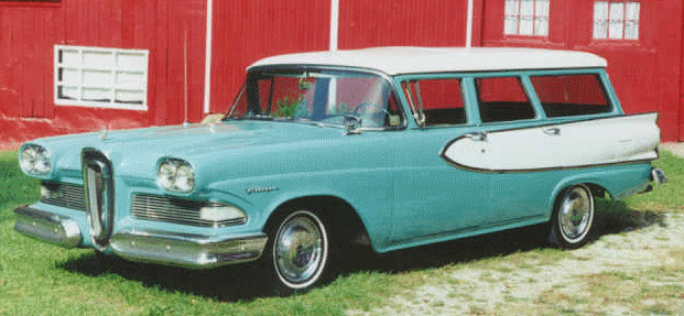 SteveP...Vista Cruiser? We had a blue one with 'wood grain' sides. It wasn't a chick magnet but I could haul a lot of girls in one when I was a young nubbin! They (or she as the case may be) never complained! Now, for real airplane haulin' get an Edsel! We had one but I was too young to drive at the time. Ours was black with a hell red interior. This is what one of those monsters looked like. It had three rows of seating AND a crow's nest!