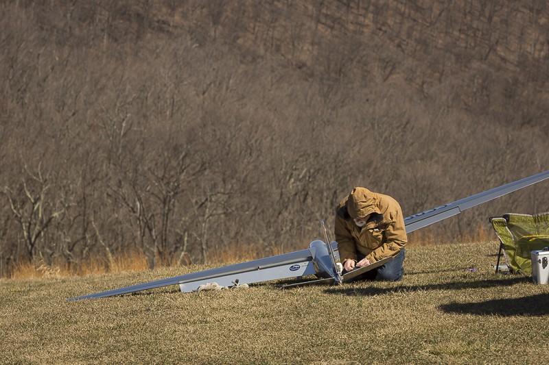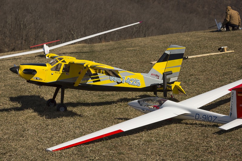 We arrived Wednesday night and I got a handful of flights on the Skylark before dark. Thursday was rainy and foggy all day, but I discovered mountain air is great for removing wrinkles in covering, especially when Len shoves it through a heat gun! Friday started off windy and turbulent and I got a few flights on the Shark, including doing my first few GPS Triangle laps with assistance from Stephane, I think I'm hooked. Also was able to maiden the Yellow Pawnee and it flew fantastic! Looks great in the air! Saturday was one of the best soaring days I've ever seen at Cumberland, you had to search for sink and fly around with spoilers to just to keep from flying away. I had over an hour flight on the Skylark and even thermaled the DG 800, unheard of! Can't wait for the next one!