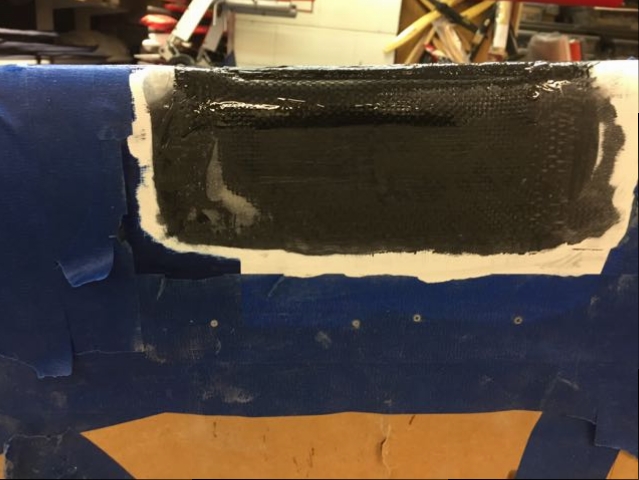 - Two layers of fiberglass/carbon weave cloth with each laid on the bias to the other. Wet out with West System epoxy