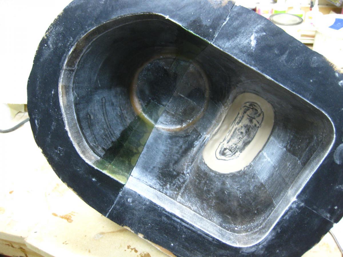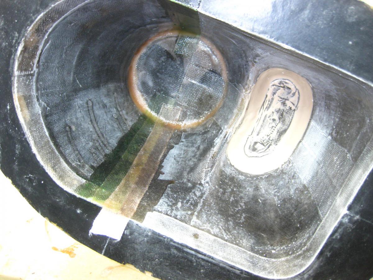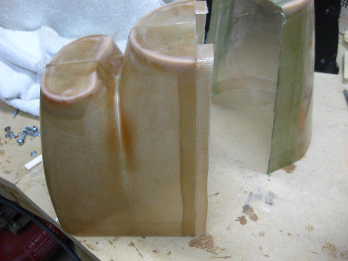 Going with a split cowl and Ring mount so I added the divider (two layers of 1" standard fiberglass tape ( Partall Film #10 brushed on the top cowl )