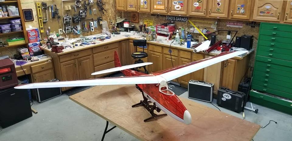 So to prevent hijacking another thread I thought I'd start with updates on mine and with the lighting and covering progress. The Peter Goldsmith Sapphire EDF sailplane. Main structure is now complete short of some sheeting once I figure out the power plant installation. Going with a similar covering scheme to my Foxbat and have quickly realized I did not order nearly enough of the red. I am making mine a night flyer and so far am very pleased with the light setup.