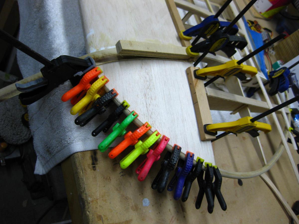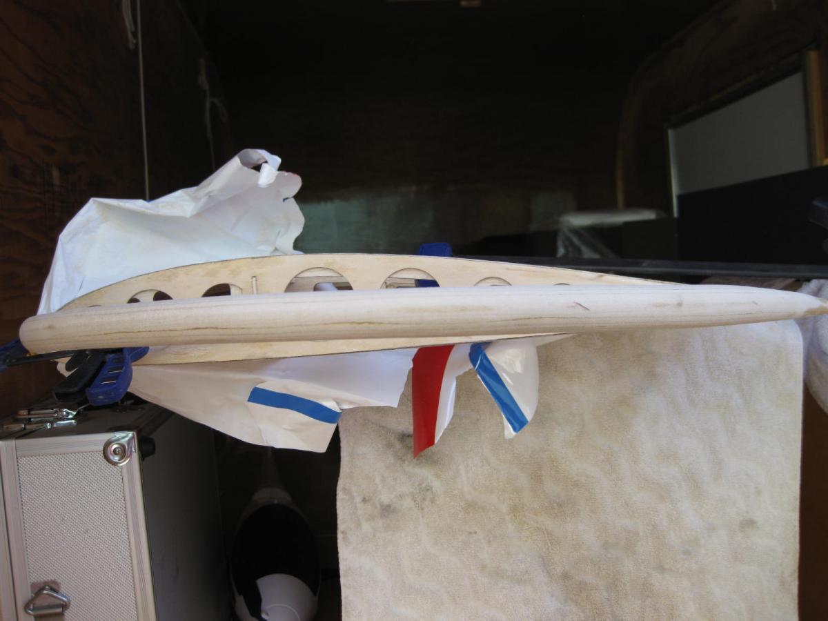) but to help with sheeting the tip slide your sand paper off the 'T' sander a bit and let the naked end glide along the rib. That'll give you a nice transition at the bow end for the sheeting to lay.