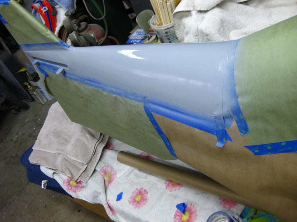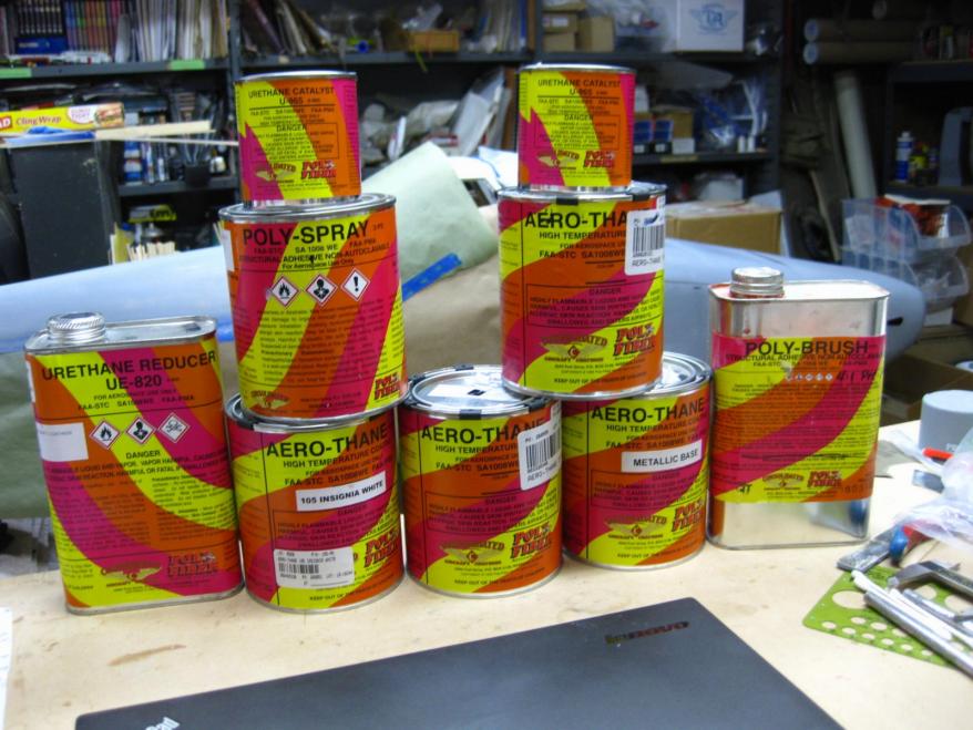 After some testing and conversations with John Ellis about PolyTone on hard surfaces.....converting to Aerothane ( with flattener to match wing PolyTone) for the Fuslage and cowl....