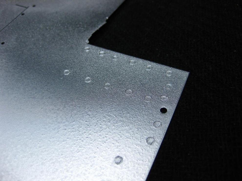 Some experimentation with the Flush rivet "process"...... primer on the G10 material ....then the soldering Iron......then paint ....in this case a little excessive as the nozzle had some "issues"