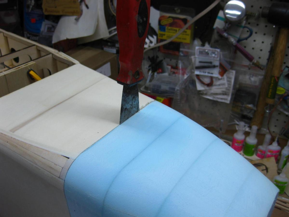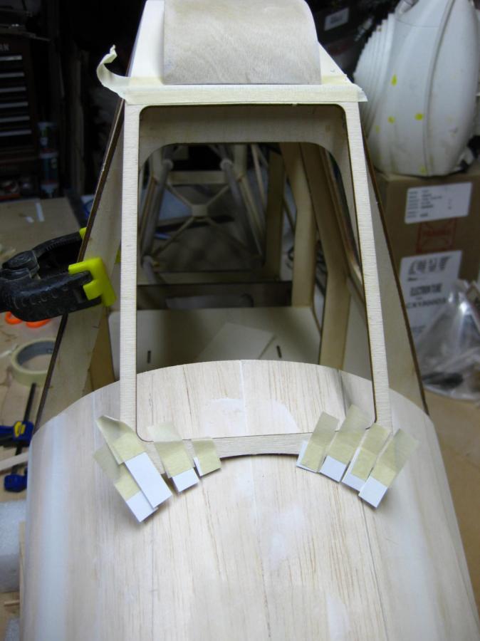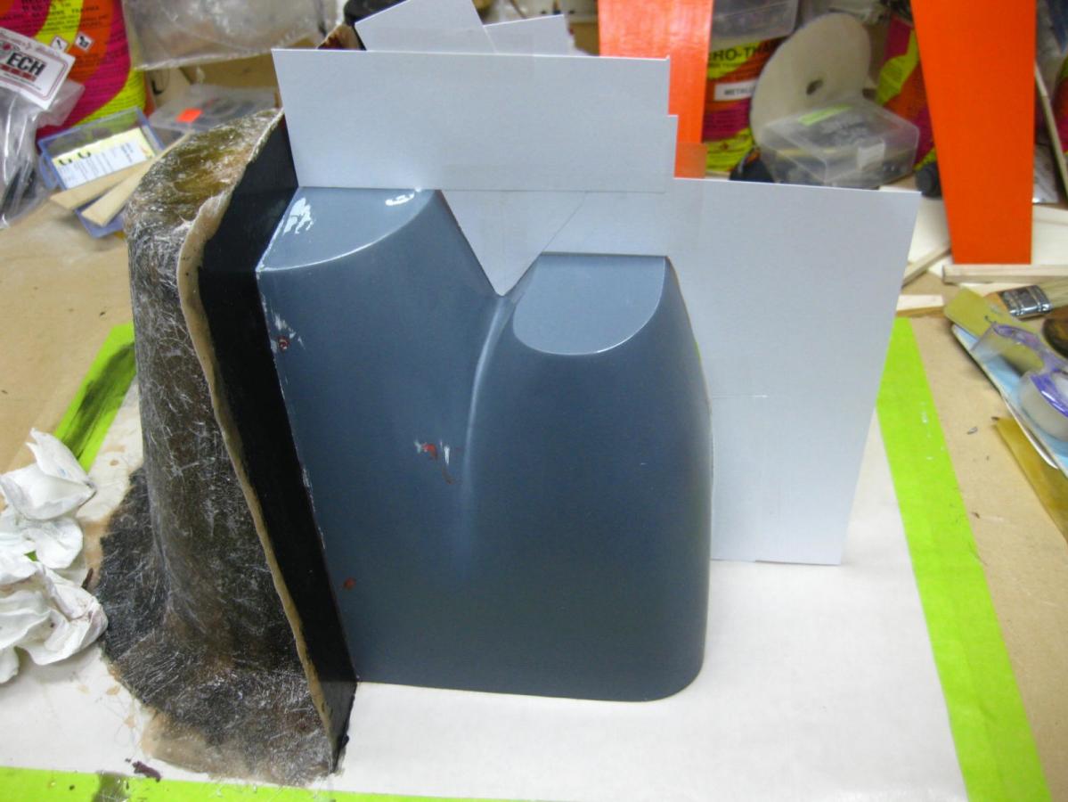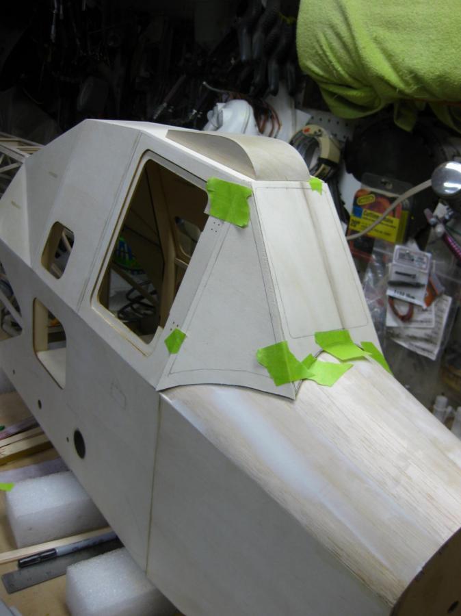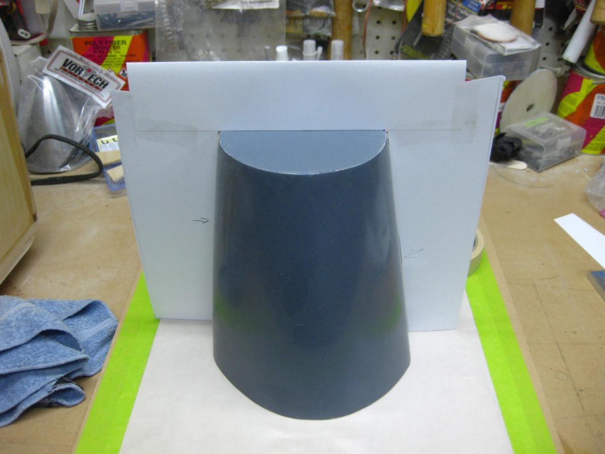 Since the instrument panel and sheeting is a different shape than the Radial cowl, I used some paper and tape to approximate the correct shape and then "sanded to shape".