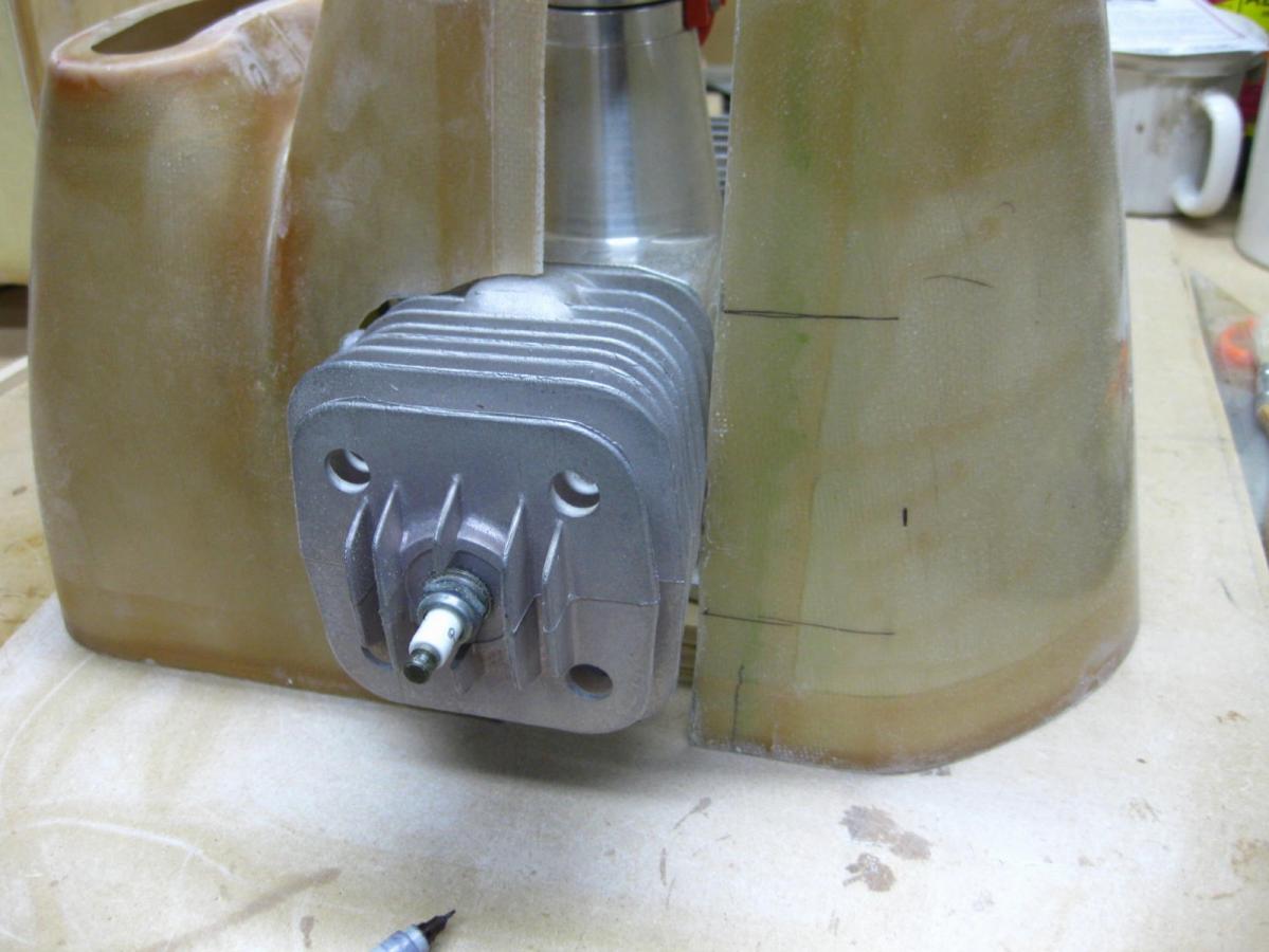 Quality time with the Dremel tool drum sander.......I'm thinking I might have to make a cosmetic cover over the left exhaust stub ( for "looks" ) so the shark mouth graphic wont get cut out.