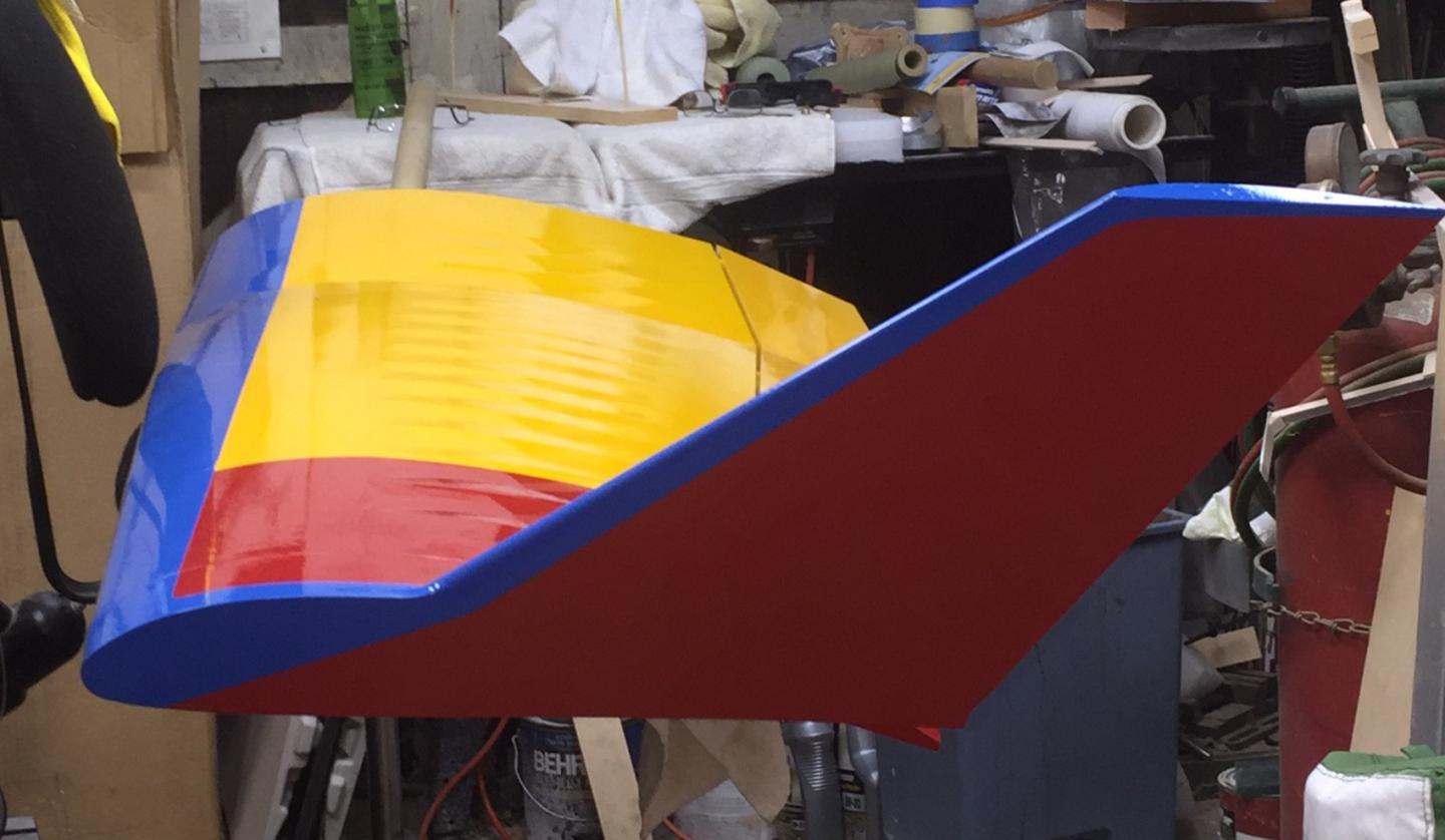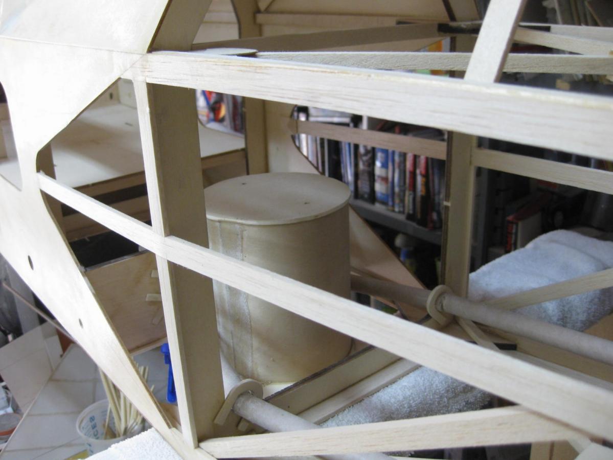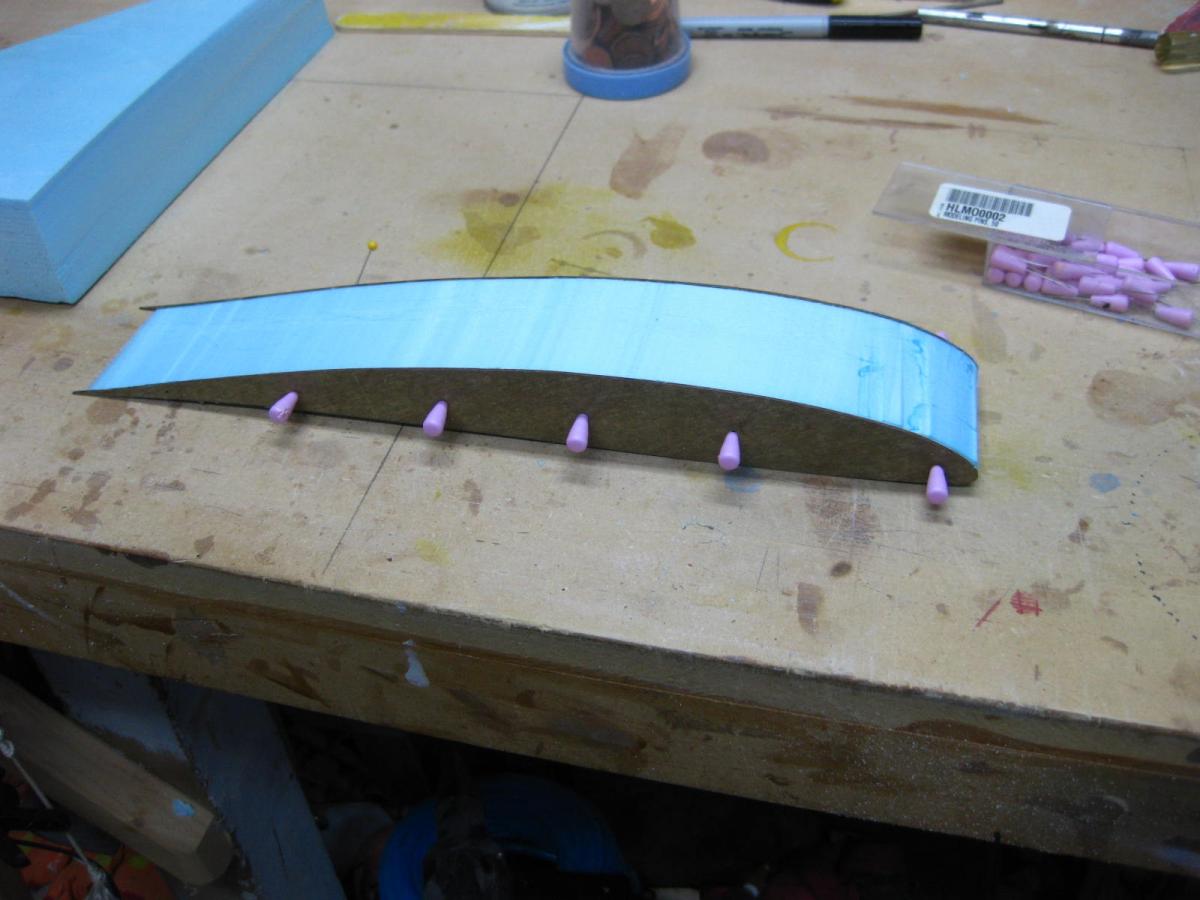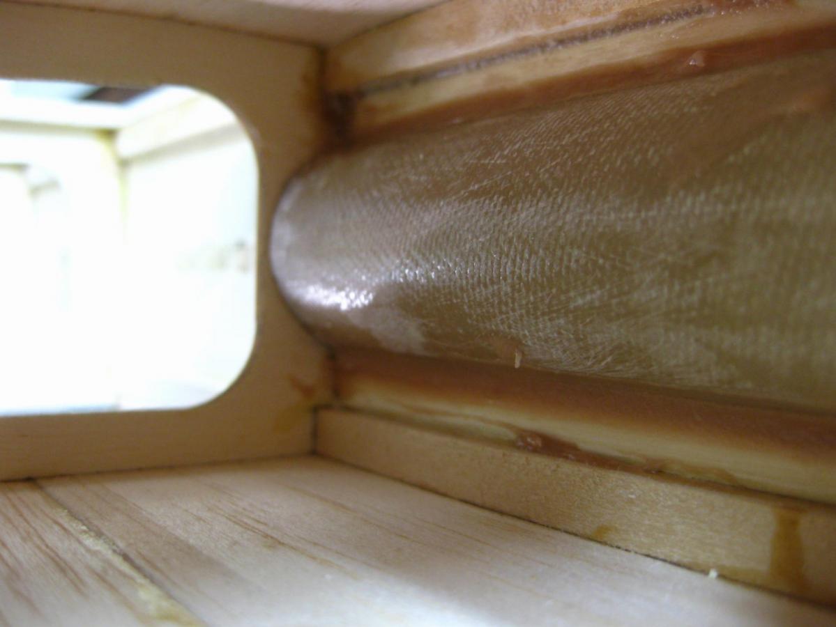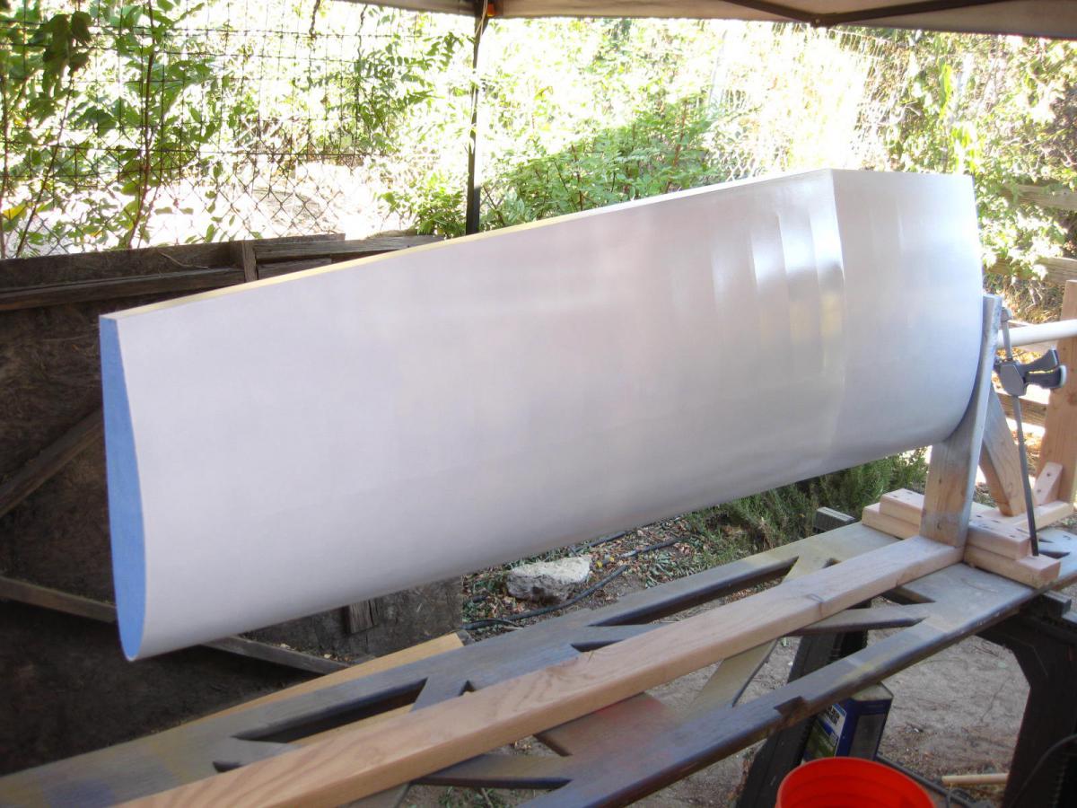 Modified Stits lite process begins - modified as in the PolyTak is thinned 3:1 and then two coats are brushed on to the surfaces that you want to glue down. Then fabric is glued down by passing a paper towel saturated with Polyfiber thinner over the fabric laying on the coated surface.